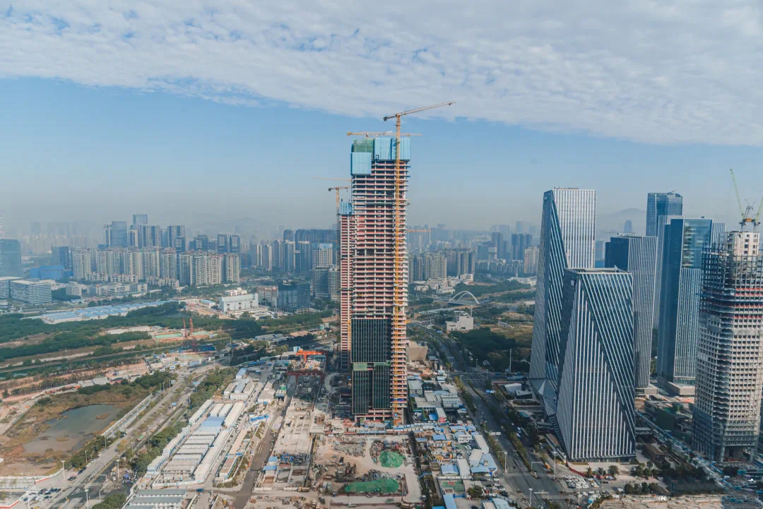 目前,前海國際樞紐中心項(xiàng)目正穩(wěn)步建設(shè)中,樞紐上蓋的T2公寓主體結(jié)構(gòu)已施工至59層,T4辦公樓主體結(jié)構(gòu)已封頂,預(yù)計(jì)2024年即將入市。